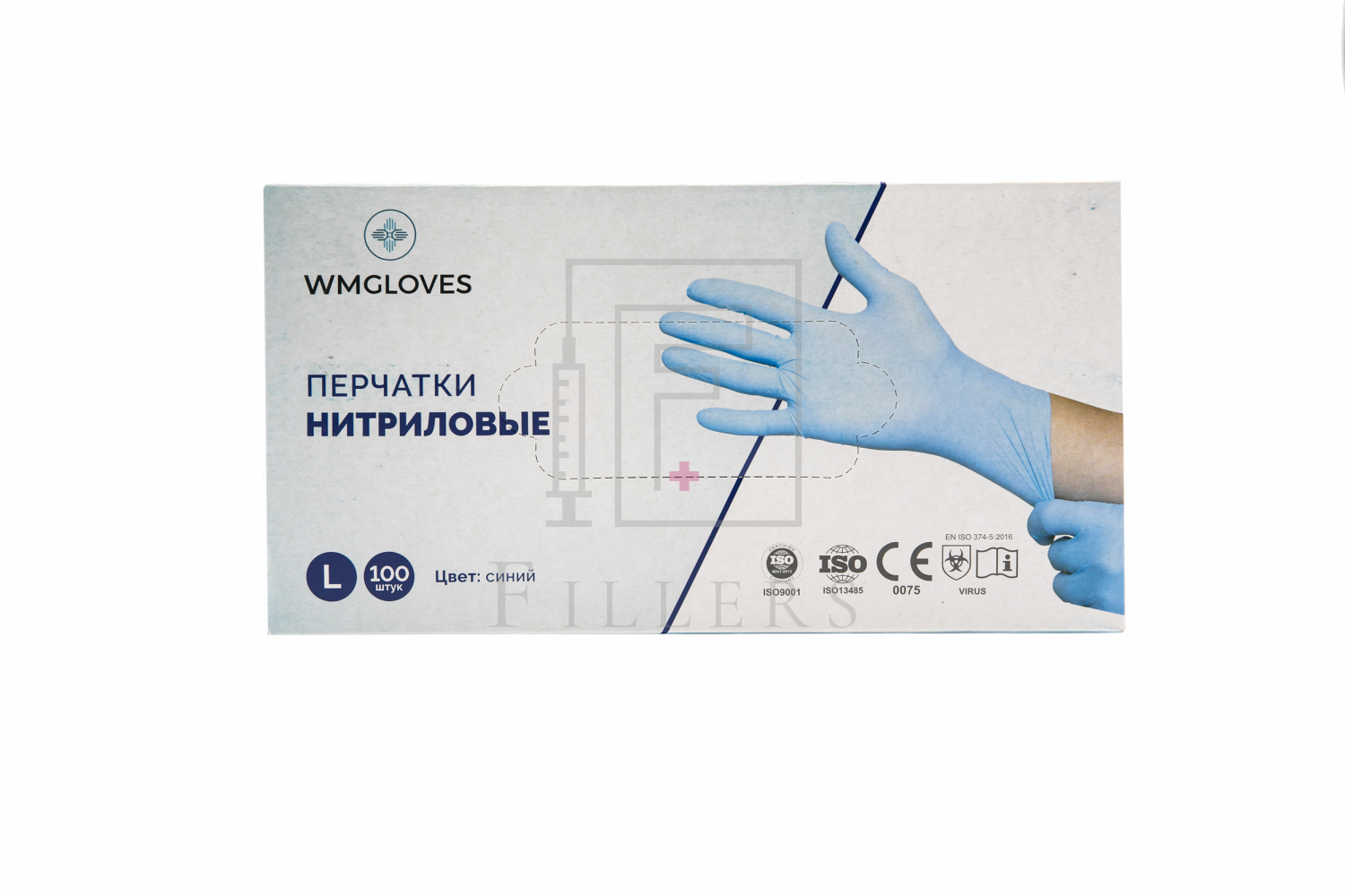 Перчатки нитриловые медицинские диагностические смотровые одноразовые нестерильные неопудренные "WMGLOVES" текстурированные на пальцах, голубого цвета, неанатомической формы, гипоаллергенны.